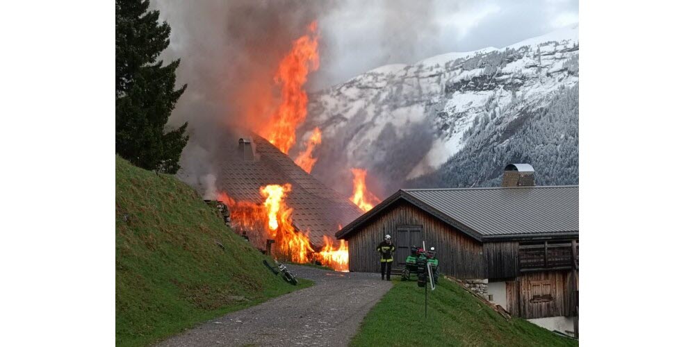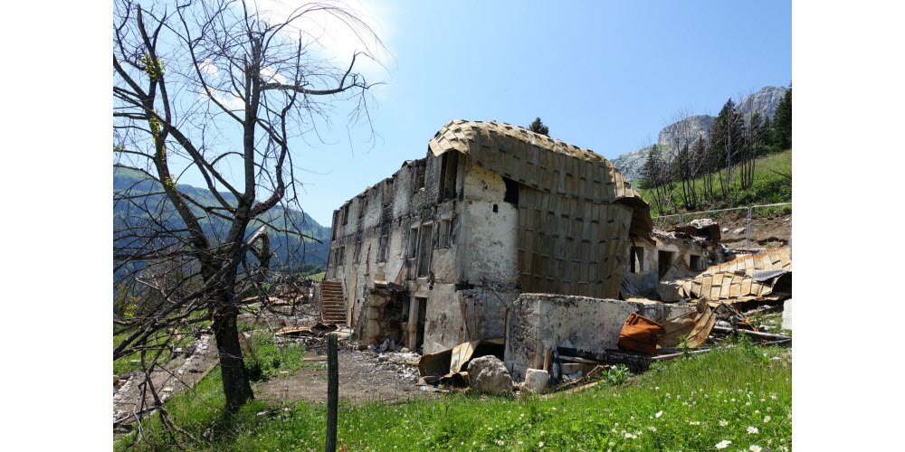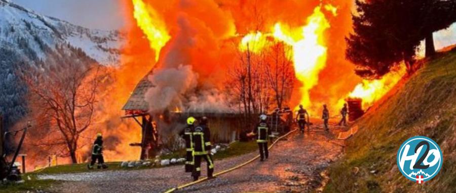 Trois chalets dont un gîte datant du XIXe siècle ravagés par le feu, l'intervention des pompiers rendue difficile par un éboulement